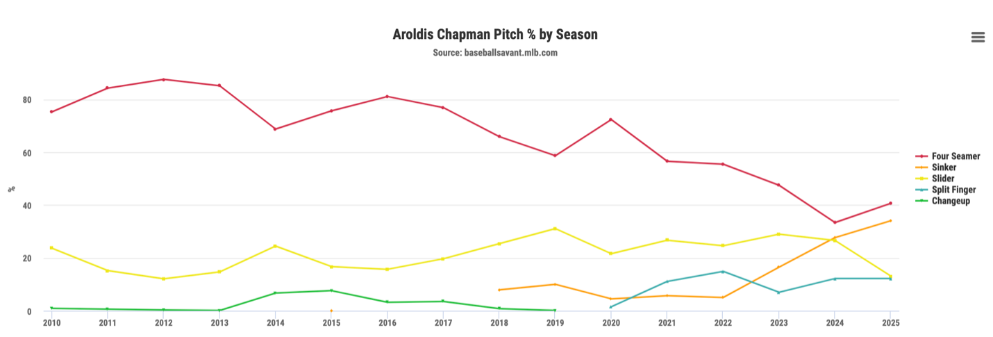 Figure 1: Aroldis Chapman pitch breakdown over his career